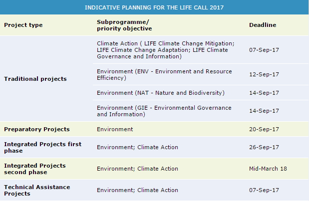 Maggiori dettagli sono reperibili al seguente link: http://ec.europa.eu/environment/life/funding/life.htm#planning17.