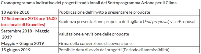 Per il Sottoprogramma Azione per il Clima, lInvito riguarda le sovvenzioni di azione dei progetti Tradizionali (buone pratiche, pilota, dimostrativi, informazione, sensibilizzazione e divulgazione), Integrati e di Assistenza tecnica dei progetti integrati.